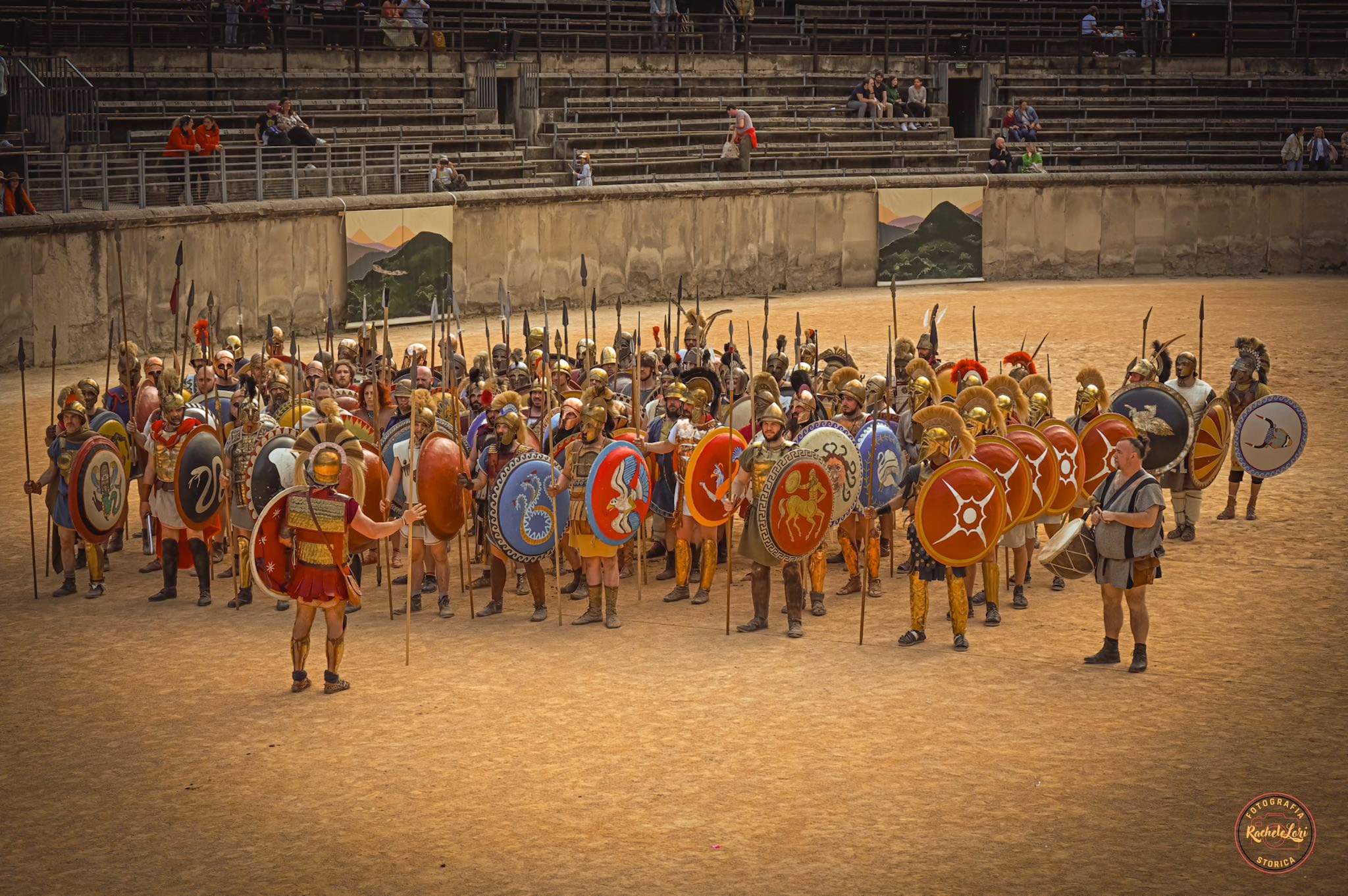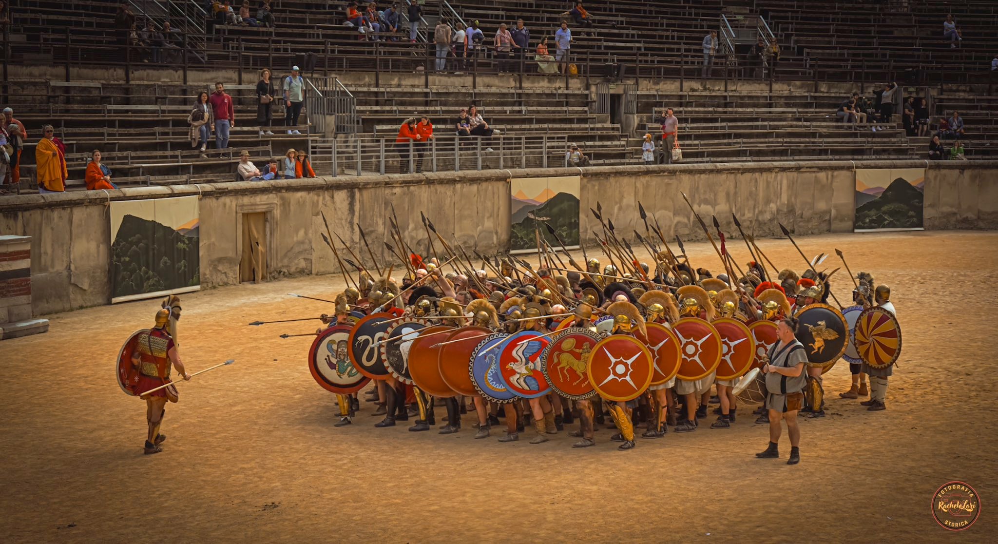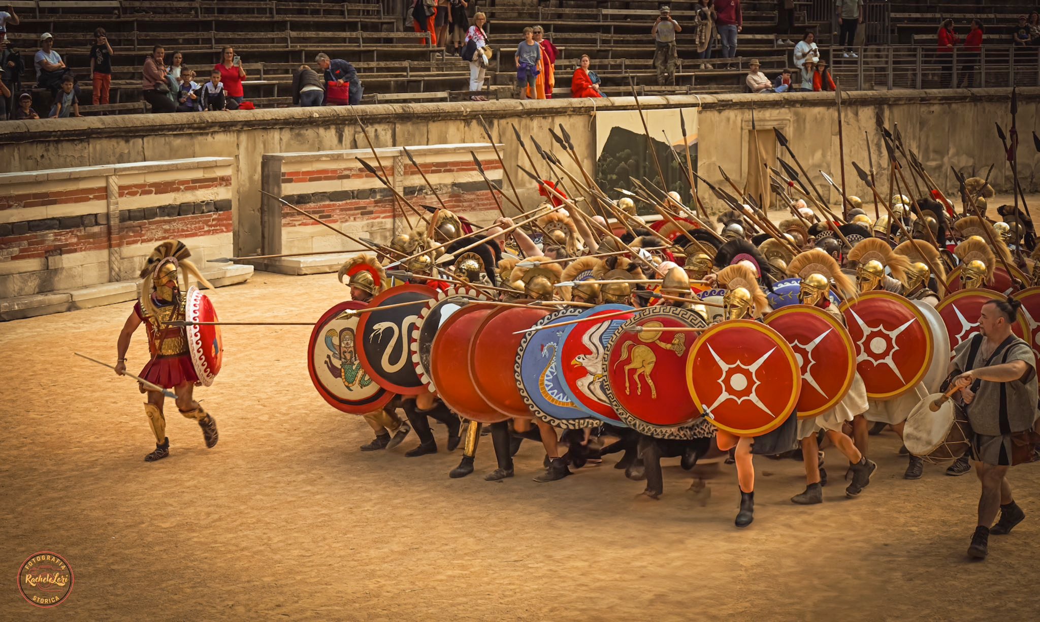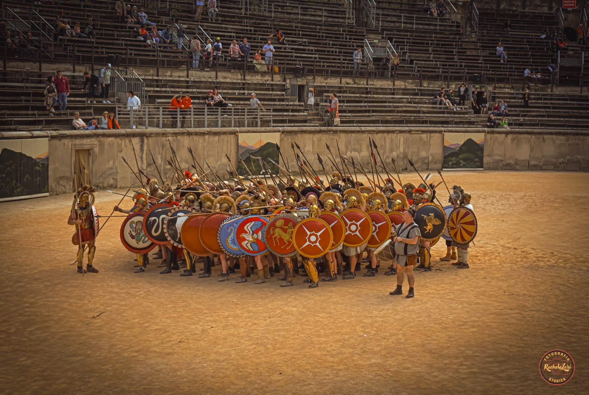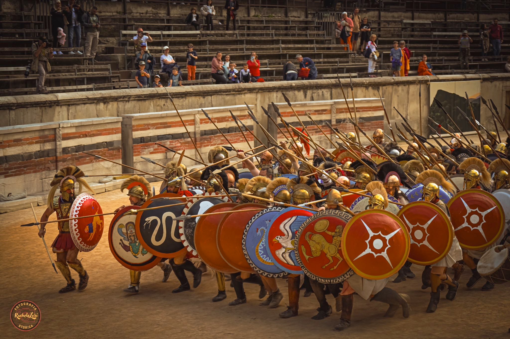 Rievocazione storica di Lochos (opliti greci) a Nimes (Francia) dall’associazione Leoni di Nemea