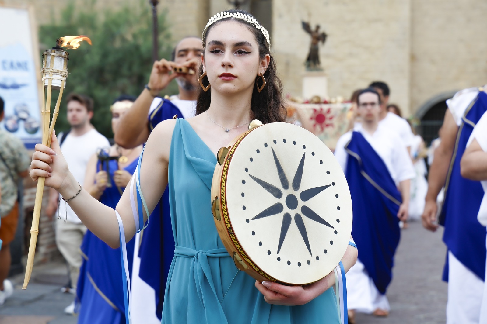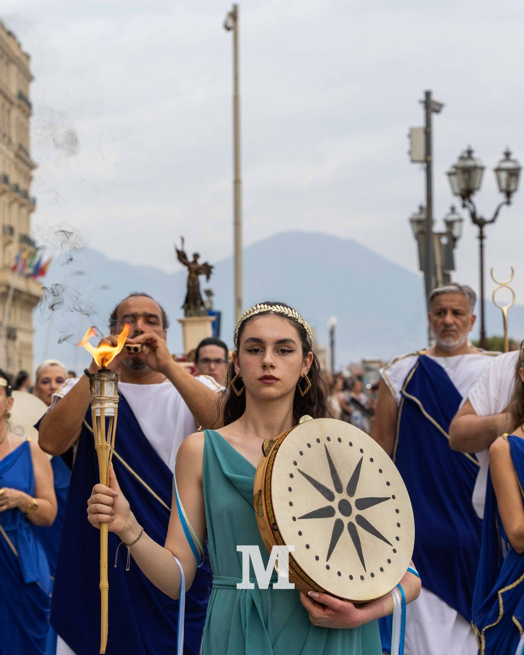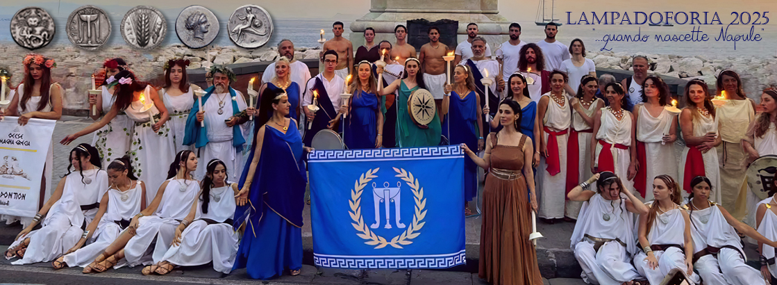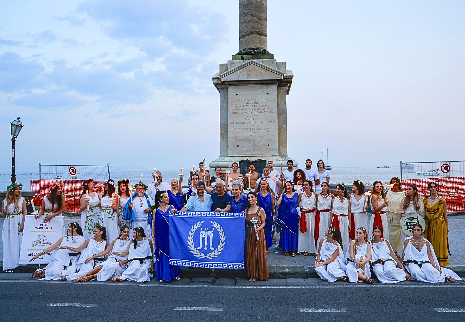 Bandiere greche ovunque, insieme alle bandiere della Magna Grecia (con il tripode, la corona, i meandri) alla Lampadephoria di Napoli (Neapolis), in occasione dei numerosi eventi dell’Antica Grecia: Lampadephoria 21/06/2025. La Lampadephoria era un’antica festa greca celebrata a Napoli fin dall’antichità. Ora, gruppi provenienti da Napoli, Atene, Taranto, Acraganta, Crotone e Metaponto si sono riuniti per continuare la tradizione. Grecia e Magna Grecia insieme in un unico evento!